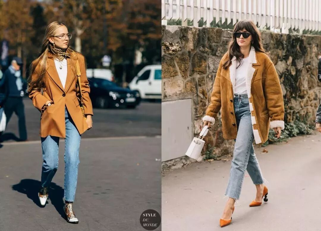 ▲淺色牛仔褲這個單品是很好襯托秋冬外套的,特別是棕色外套,看上去落落大方。