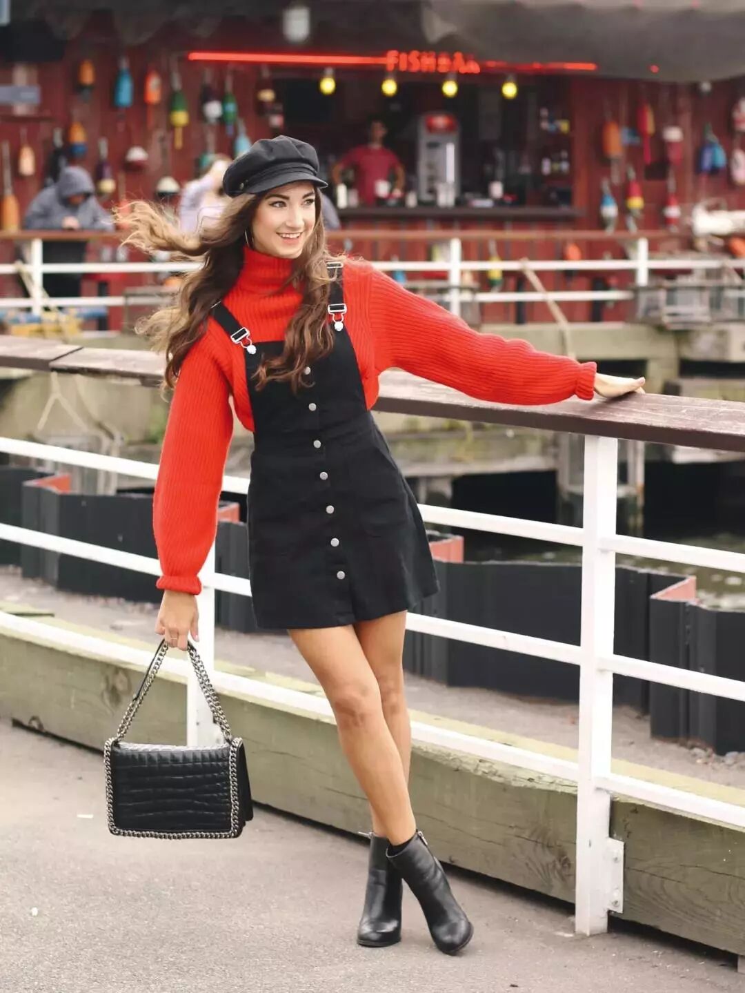 ▲紅色和黑色很好配,這倆個在冬天也是最為常見的!