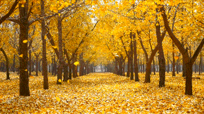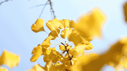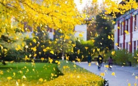 暖融融的小太陽照的人發懶,比陽光更明媚的是掛滿樹梢的黃澄澄的銀杏。在和煦的秋風中一片片飄落,把地面鋪的厚厚實實的,這就是故都秋味最濃烈的時候了。