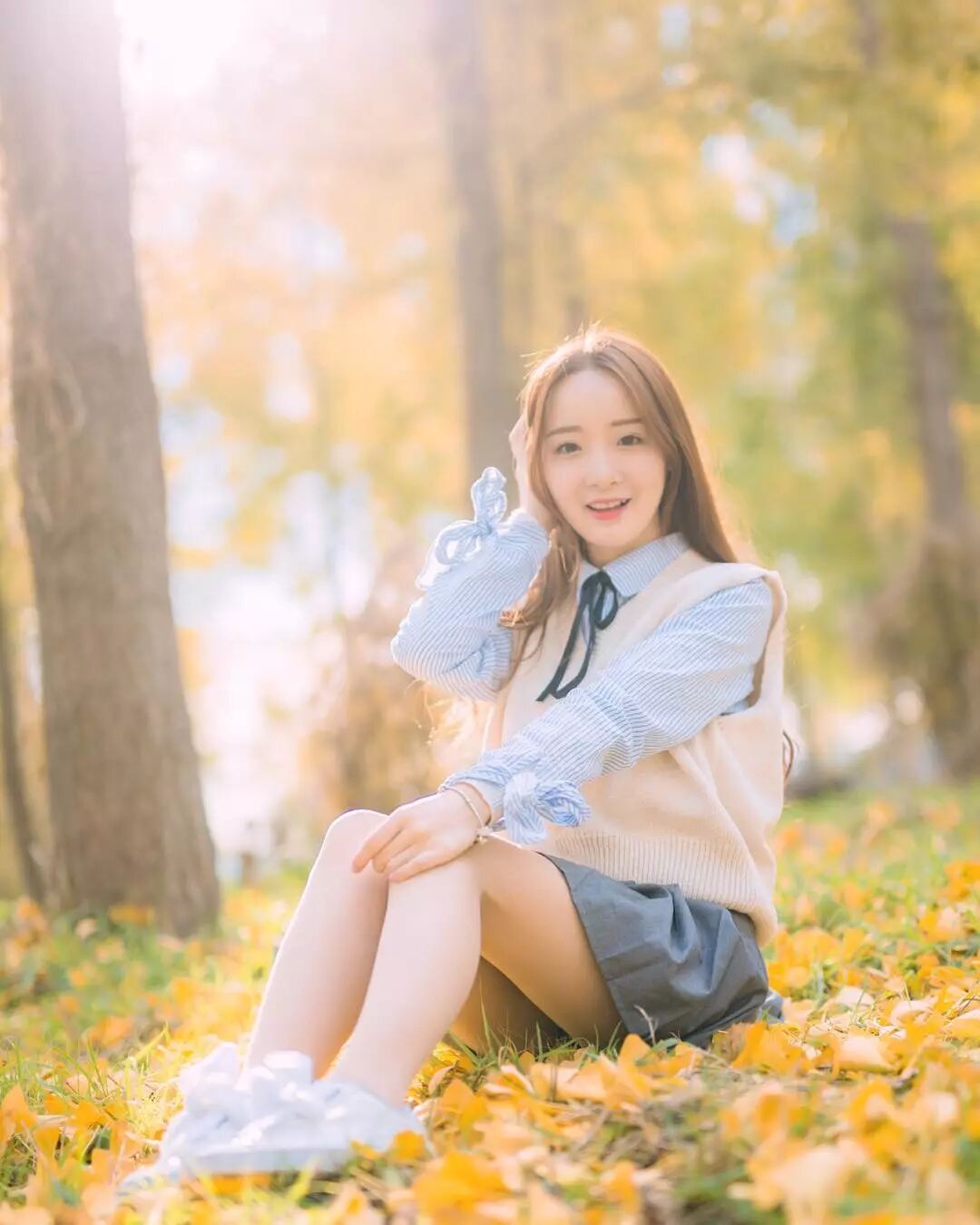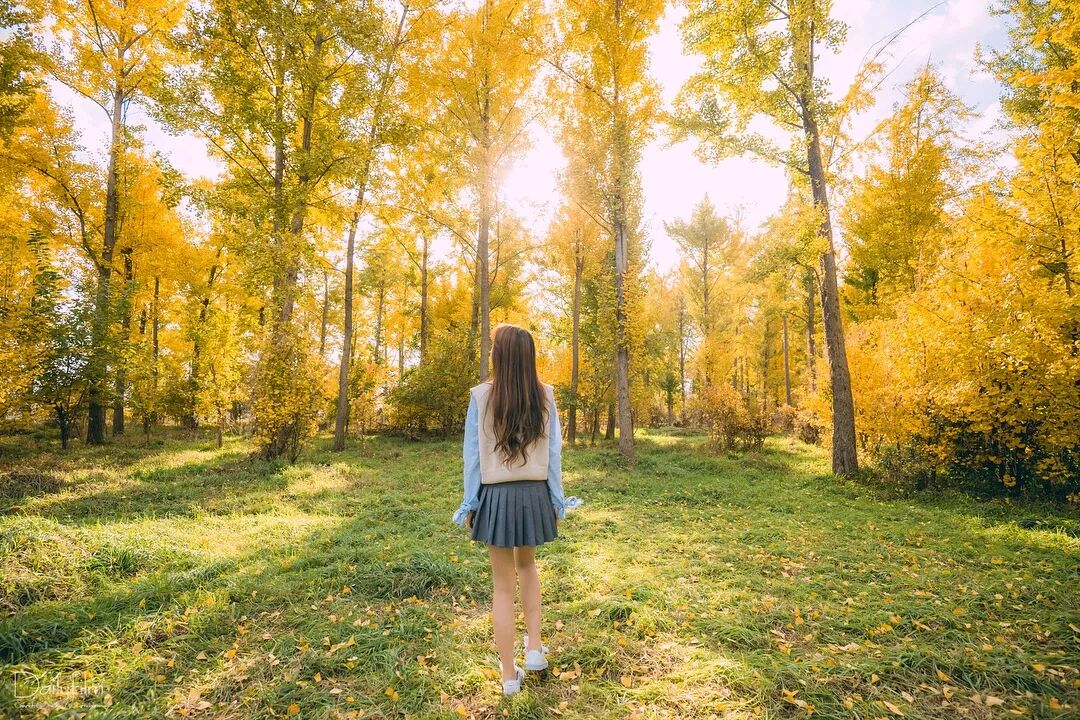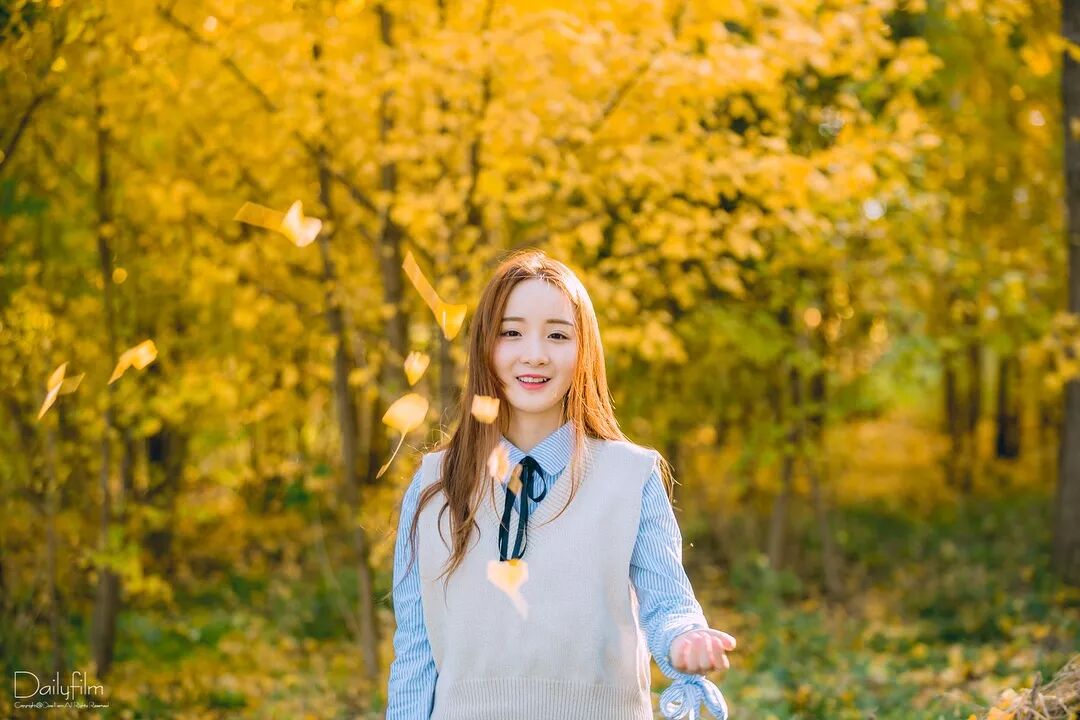 穿衣:因為銀杏葉已經很亮了,所以白色淺色系是最搭的了。