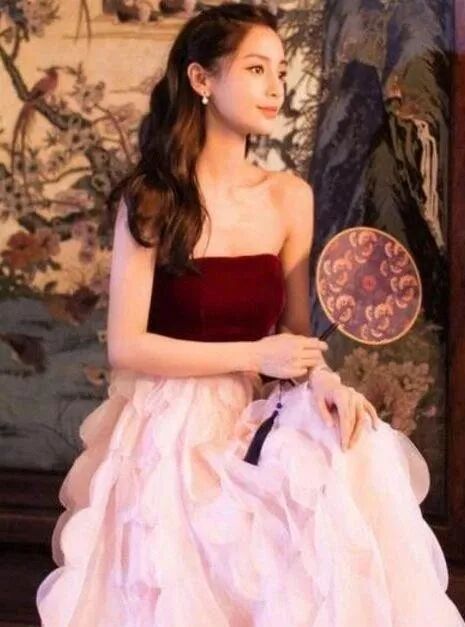 楊穎上身的裹胸是金絲絨面料的,看起來非常舒適,下半身穿的粉色蛋糕裙顯得有點突兀了,不太符合楊穎的氣質,相比可愛風格,楊穎其實更適合性感高貴的氣質,不太能駕馭粉色衣服,畢竟是當媽媽的人了,難怪網友覺得楊穎有點裝嫩了,但不可否認,楊穎手拿著圓形扇子坐在那,美的跟畫中的人兒一般。