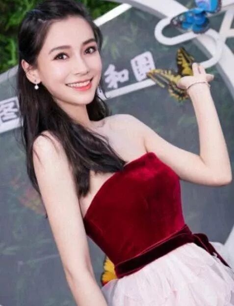 楊穎作為知名小花旦,受到粉絲的熱烈追捧,穿搭也一直備受關注,圖中楊穎身穿抹胸連衣裙,膚若凝脂,五官精致,微笑的樣子很迷人,手上站立著蝴蝶,像仙女一般美麗動人。