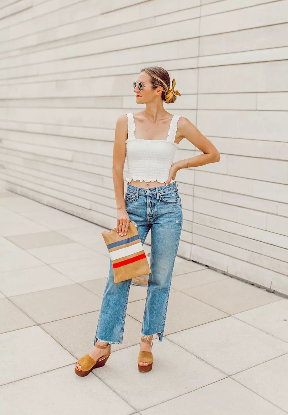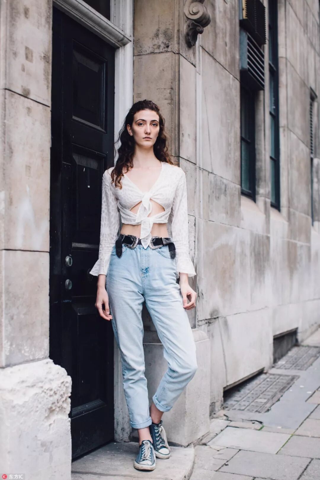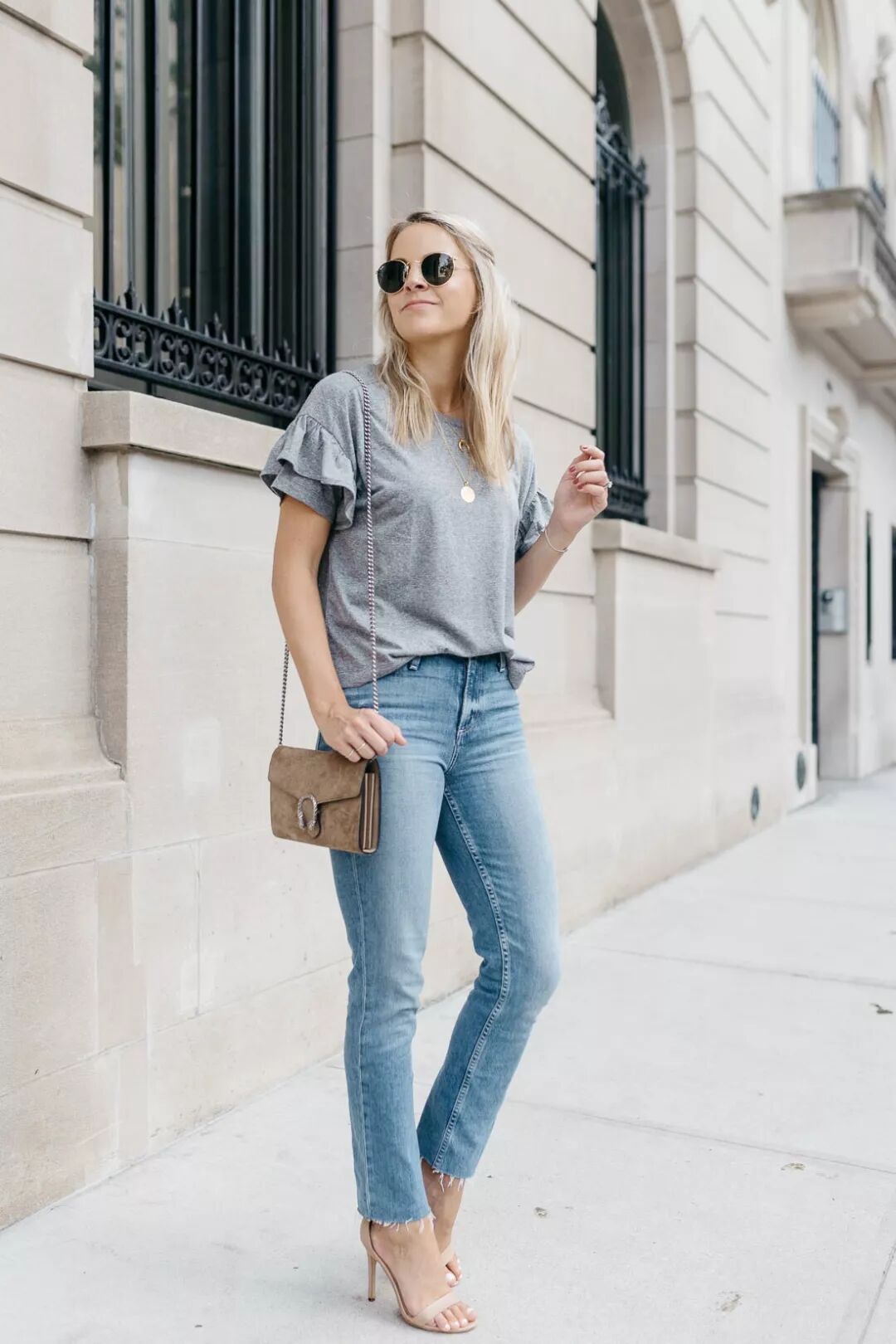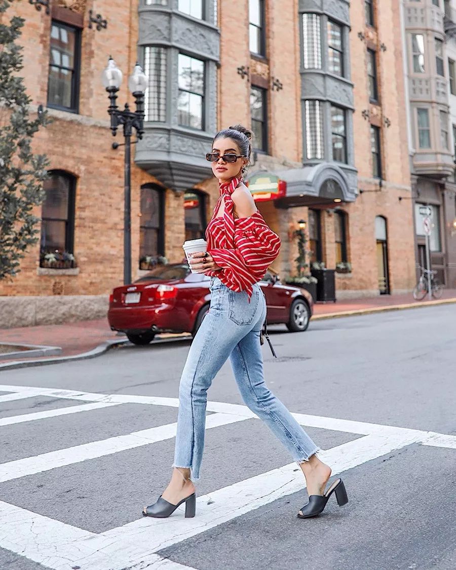 小貼士:這類牛仔褲比較大眾,所以推薦搭配精致些的鞋子以顯氣質。比如粗跟鞋,穆勒鞋,一字帶等,懂得「浪」也懂得「精致」,才是時髦人士的打開方式。