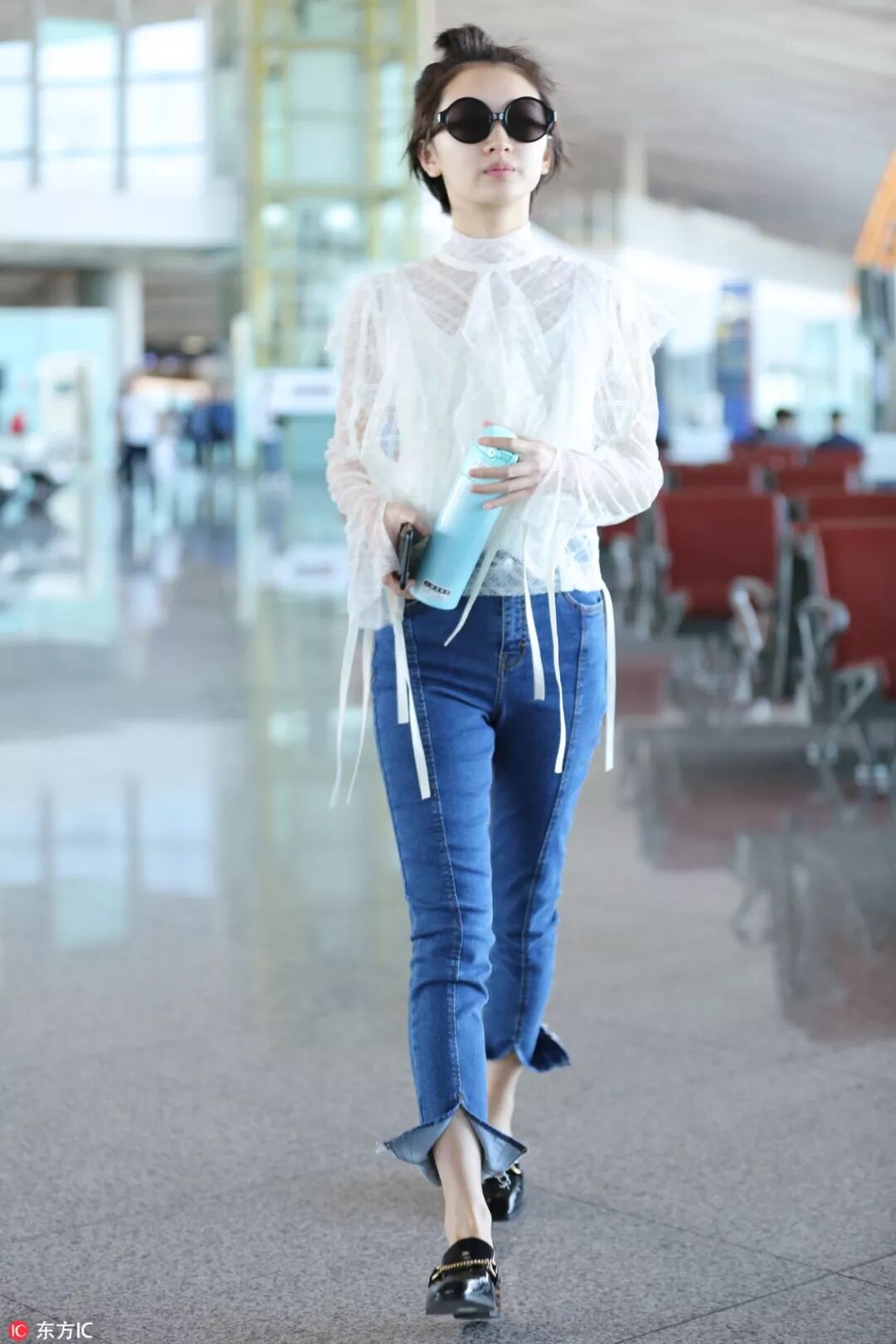 ▲而周冬雨索性讓褲腳「開個花」,把剪開的兩片翻起來。搭配飄帶透視上衣,一向溫柔可人的蕾絲居然給搭出了鬼馬感,看來「會玩」和衣品之間,關聯匪淺!