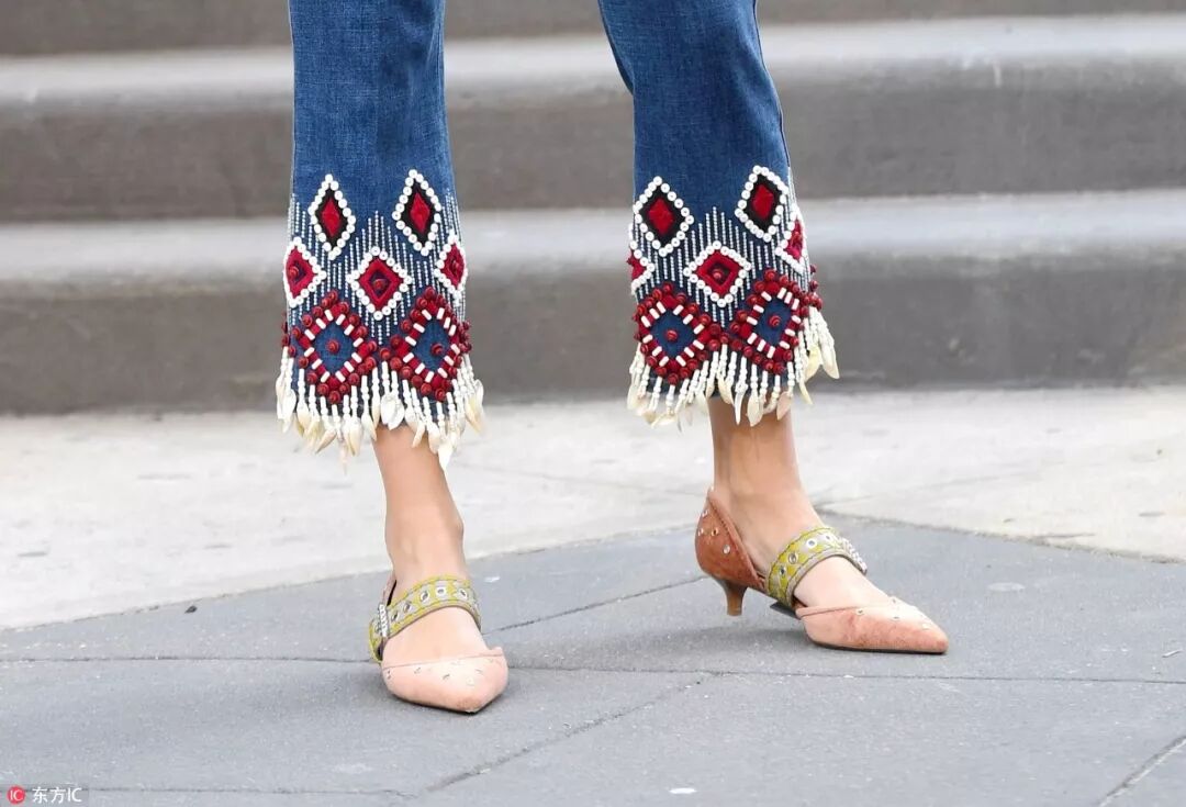 最減齡的一款牛仔褲來了!九分褲遍布全天下,但帶上點圖案,刺繡、拼接元素,那可不就成了人群中被人多看一眼的存在了嗎!例如允兒早些時候穿過的星星褲,歐陽娜娜穿的拼色褲,博主 Erica Pelosini穿的滿身logo褲等等,以後看我潮不潮,先問我的牛仔褲!