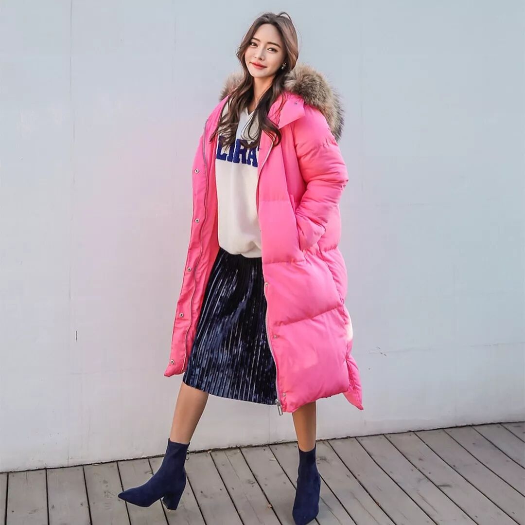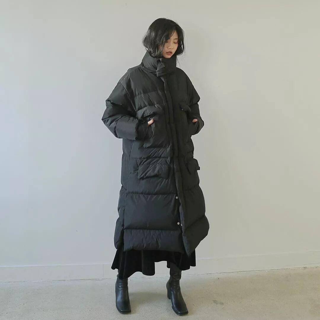 oversize寬鬆款羽絨服搭配小黑褲,顯腿細。
