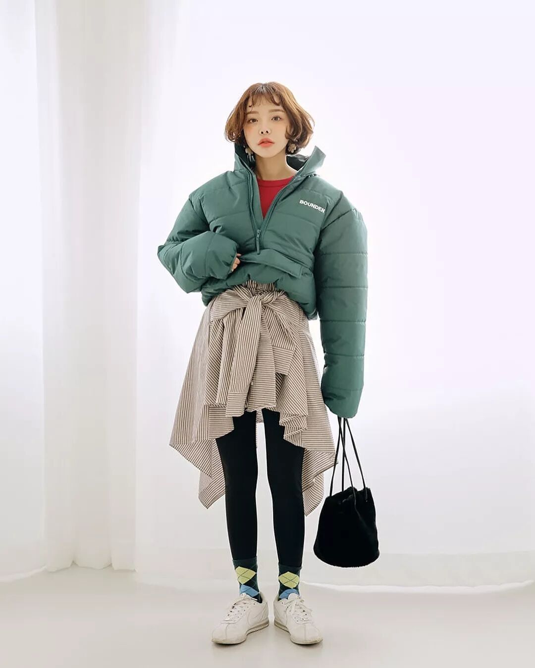 不過,羽絨服搭配裙子最忌諱層次太多,太複雜反而沒有重點。