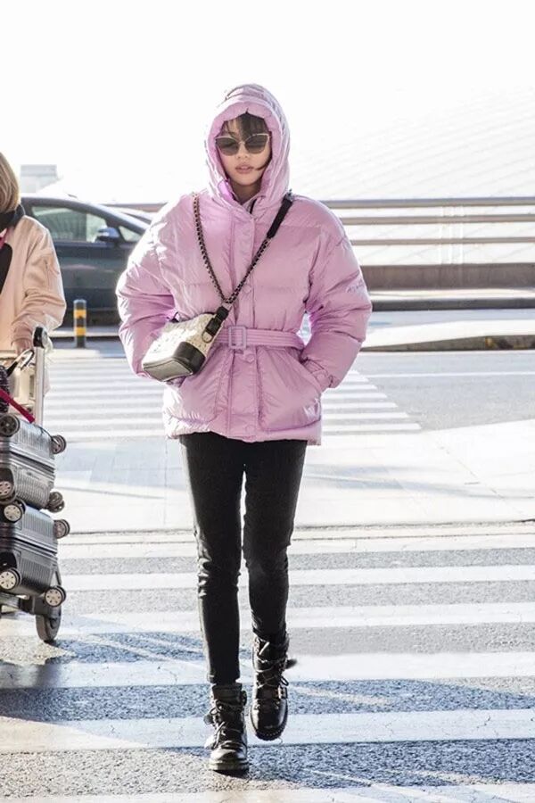 也可以系腰帶羽絨服搭配修身褲,小個子可以搭配小黑褲+黑靴。