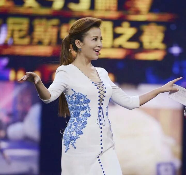 看來朱迅什麼顏色的裙子都敢挑戰,居然選擇了一條黃色的裙子,不得不說這種顏色特別襯皮膚,這條裙子肩膀是披風設計,腰兩側還繡有刺繡,肚子處一個蝴蝶結看著真礙眼,而且這條裙子還特別顯贅肉,穿在身上不太好看。