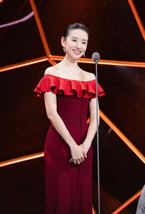 上台的董潔,身穿紅色禮服,露肩處理,看起來性感十足,同時苗條身材盡收眼底,小蠻腰也是沒誰了。