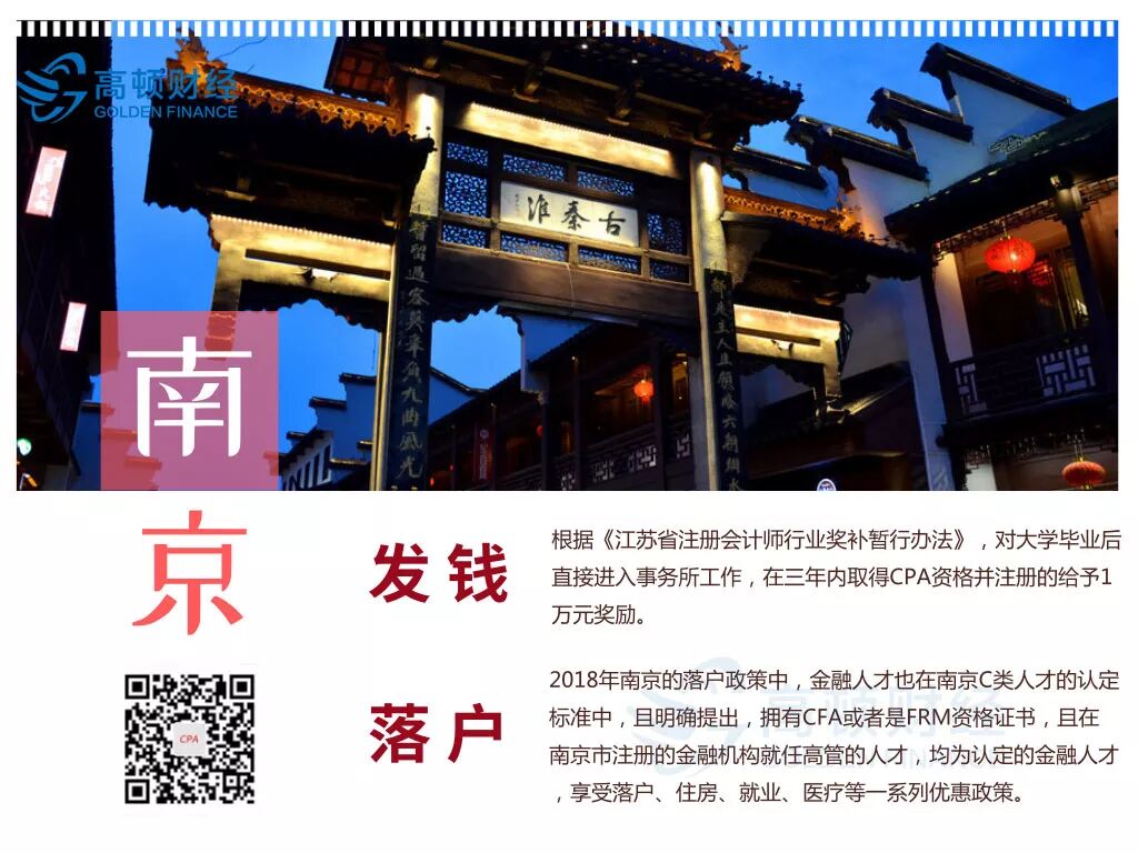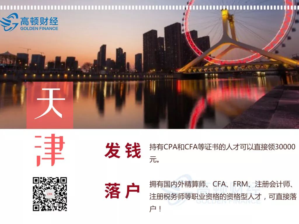 根據人才評定的標準:擁有CPA、CFA、FRM等證書財會金融人就有機會被評定為金融高級專業人才!對現有的金融高級專業人才給予獲評當年補貼10萬元;對當年新引進的金融高級專業人才給予安家補貼20萬元(分三年按40%、30%、30%比例發放)