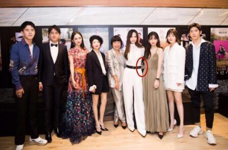 好,這是活動安排,與本尊意願可能無關。再看這張活動現場的合照,男明星自覺往外站,中間位置留給女明星。而女明星唐嫣和楊冪,中間又隔了兩位女士。這就很迷了。