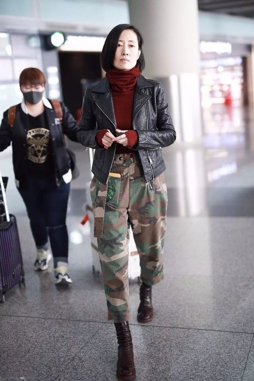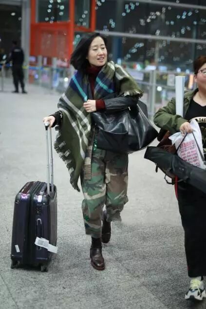 在機場的打扮也是要溫度不要風度,穿顯氣質的深紅色毛衣,搭迷彩褲子,很帥氣隨性,同時披了一件圍巾,讓她又溫暖了幾分。