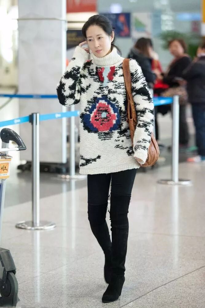 42歲的劉敏濤還是活的比較真實,雖然面容長的著急了點,不過她在機場從來都是真實面對大家,在機場都是素顏狀態呢。