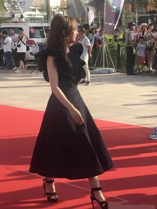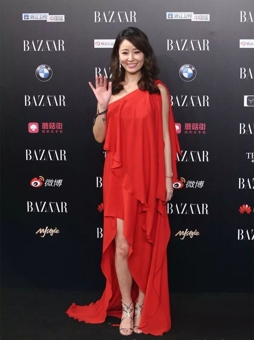 同樣是穿紅色的連衣裙,林心如就因為身材的原因贏了趙薇,這種開叉的設計露出大腿,讓她看起來沒那麼臃腫。