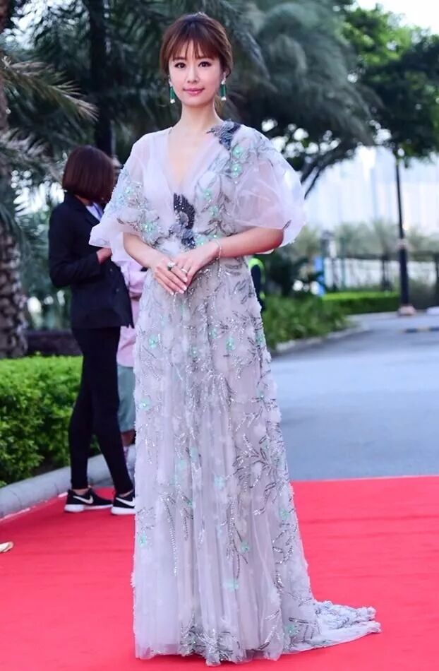 林心如更加懂得揚長避短,選擇這種仙氣的禮裙很減齡,這種刺繡的設計更加彰顯氣質比較精致,空氣瀏海又很顯少女感。