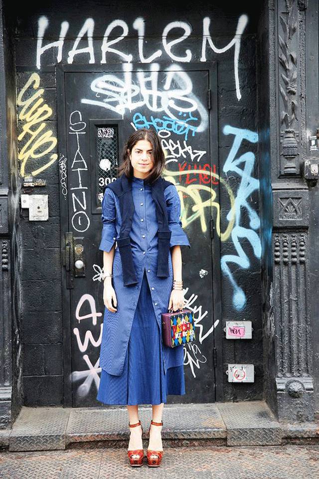 Leandra的撞色系搭配,被很多時尚雜誌報導過,這除了她的時尚靈敏度外,少不了不斷的嘗試學習,對於這種搭配方法,我們可以學習簡單的一些如紅+藍、藍+綠的配色等。