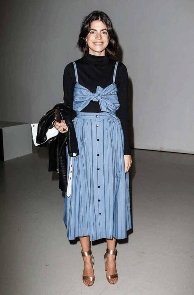 要說之前小編就寫過體型穿搭 | 原來A型半身裙才是早秋的瘦腿神器!,A型裙是Leandra最愛的單品之一,從這些穿搭圖中也可以看出,各種款式的A型裙搭配不一樣的風格。