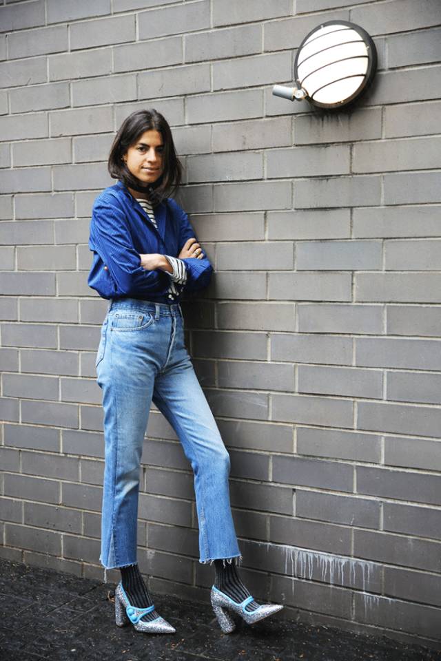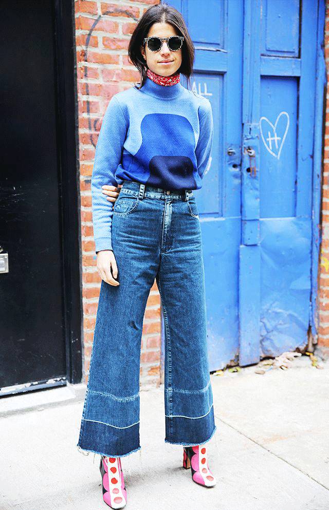Leandra除了紅色外,最愛穿的就是藍色系單品了,藍色牛仔外套、牛仔闊腿褲都讓她的穿搭風格更迷人有氣質。