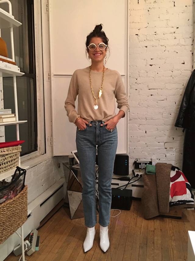 小個子女生在穿中長款的H型外套時,必須要搭配一條腰帶才能顯出腰線來,不過Leandra用到的並不多,因為她的單品基本上都是高腰款式為主。