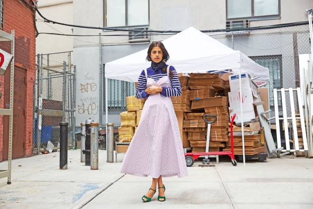 Leandra即使選裙裝也不忘了高腰款式,吊帶款的高腰裙不僅可以完美的展現身材比例,還非常甜美優雅。