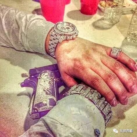 同理,鑽石手表當然要配大鑽戒+鑲鑽手槍,才夠閃啊。