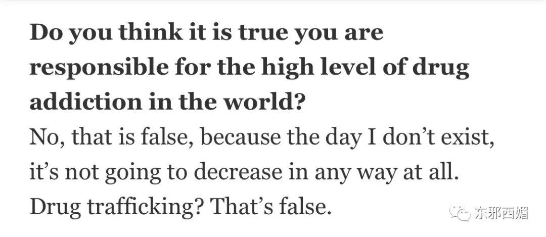 這篇神奇的採訪中,古斯曼宣揚販毒無罪,沒有消費就沒有買賣;還自稱從不主動使用暴力,每次都是迫於自衛才出手,簡直把自己洗得像朵碩大的白蓮花。