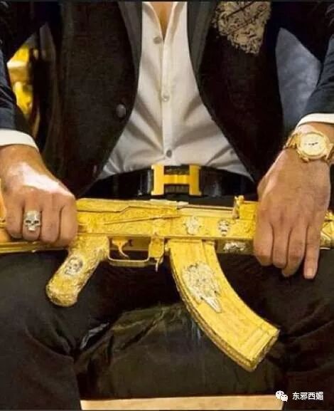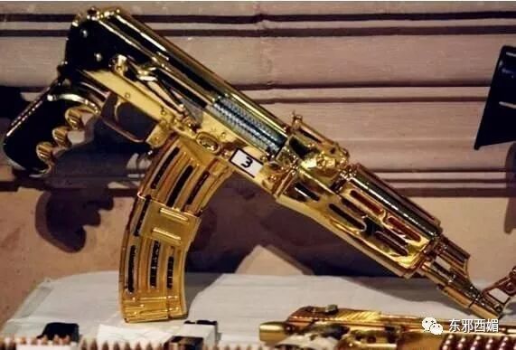 他把隨身帶的AK47步槍也鍍上黃金!