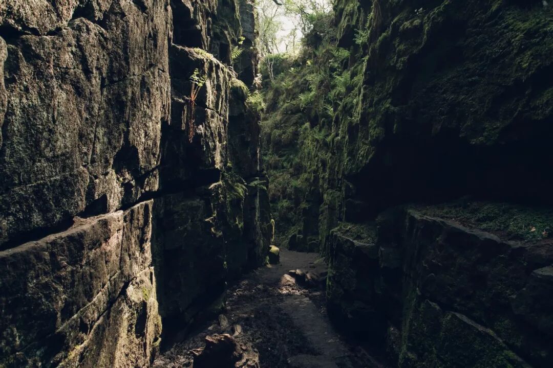同樣是教堂,同樣在英國,路德教堂與聖鄧斯肯的風格相去甚遠。這里更像是一個洞穴,墨綠色的苔蘚濕漉漉地附著在巖石上,蕨類植物和三葉草矮矮地掛著。