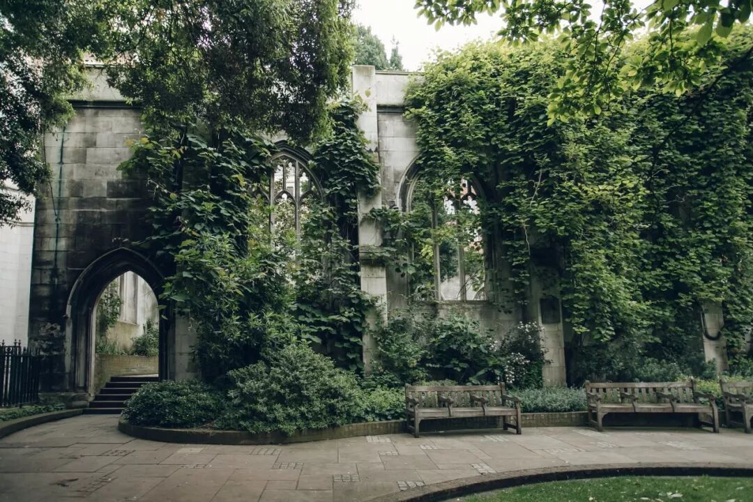India 和 Magnus 說,這里雖然早已不是秘密之地,但仍是倫敦城內一個逃避現實的好去處。在「二戰」期間,建於公元 1100 年左右的聖鄧斯肯教堂遭遇了轟炸,戰爭結束後,這處廢棄之地慢慢變成了公共花園。