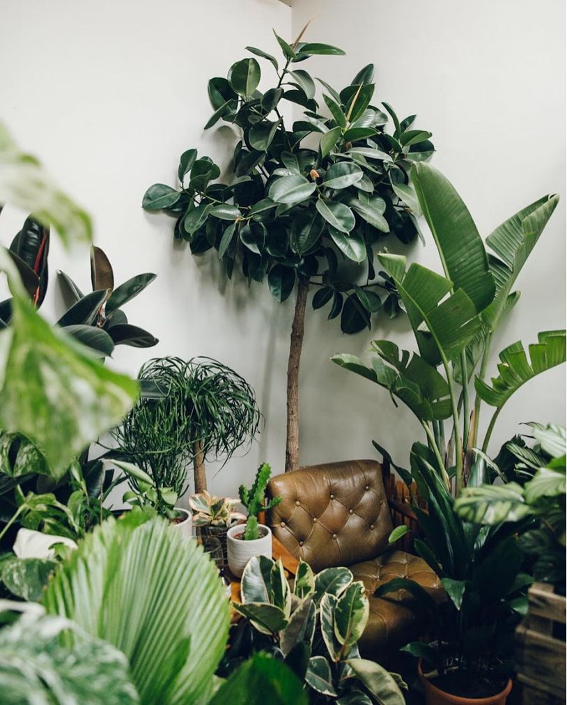 在這里,仙人掌與棕櫚樹擠在一起,各式各樣的龜背竹伸展著厚重多汁的葉片。總之,室內觀葉植物幾乎占據了所有空間。