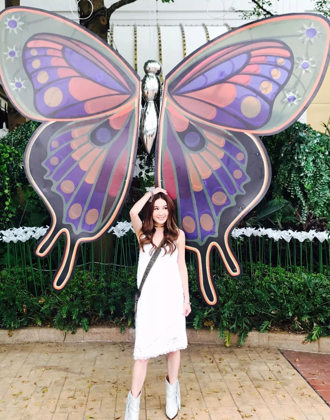 她這身裝扮還比較正常,沒有那麼漏點,設計也比較單調,就是一條吊帶設計的白色裙子,穿在身上比較襯托皮膚,下面一雙白色的短靴,配起來還挺好看的。