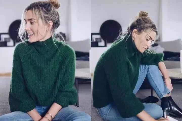 上面提到的馬海毛面料的毛衣,仙女們可以考慮入手一件軍綠色,休閒又清新,搭配牛仔單品的最佳選擇之一▼