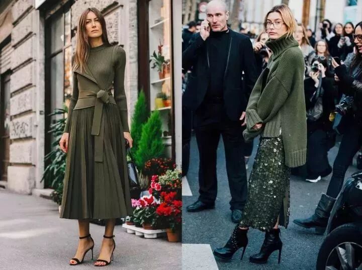因為軍綠色比較經典的單品是外套,給人感覺總是非常硬氣。但其實軍綠色也很適合用在針織單品上,仙氣起來,簡直擋不出▼