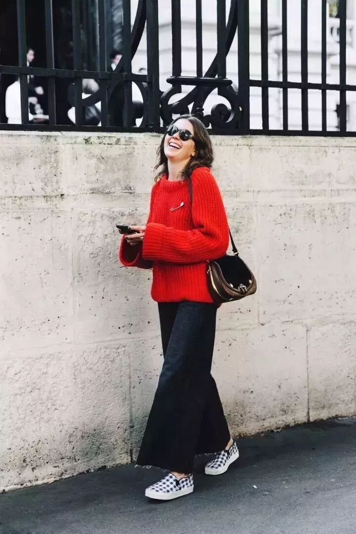 喜歡休閒風的仙女們也可以用「紅+黑」這種配色,黑色能保留造型的時尚感,紅色給造型添幾分高級感,完美▼