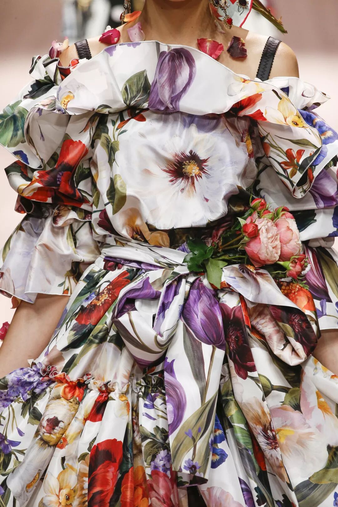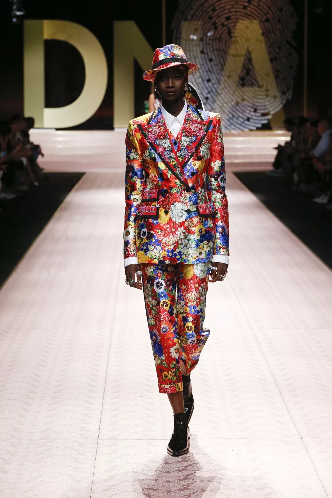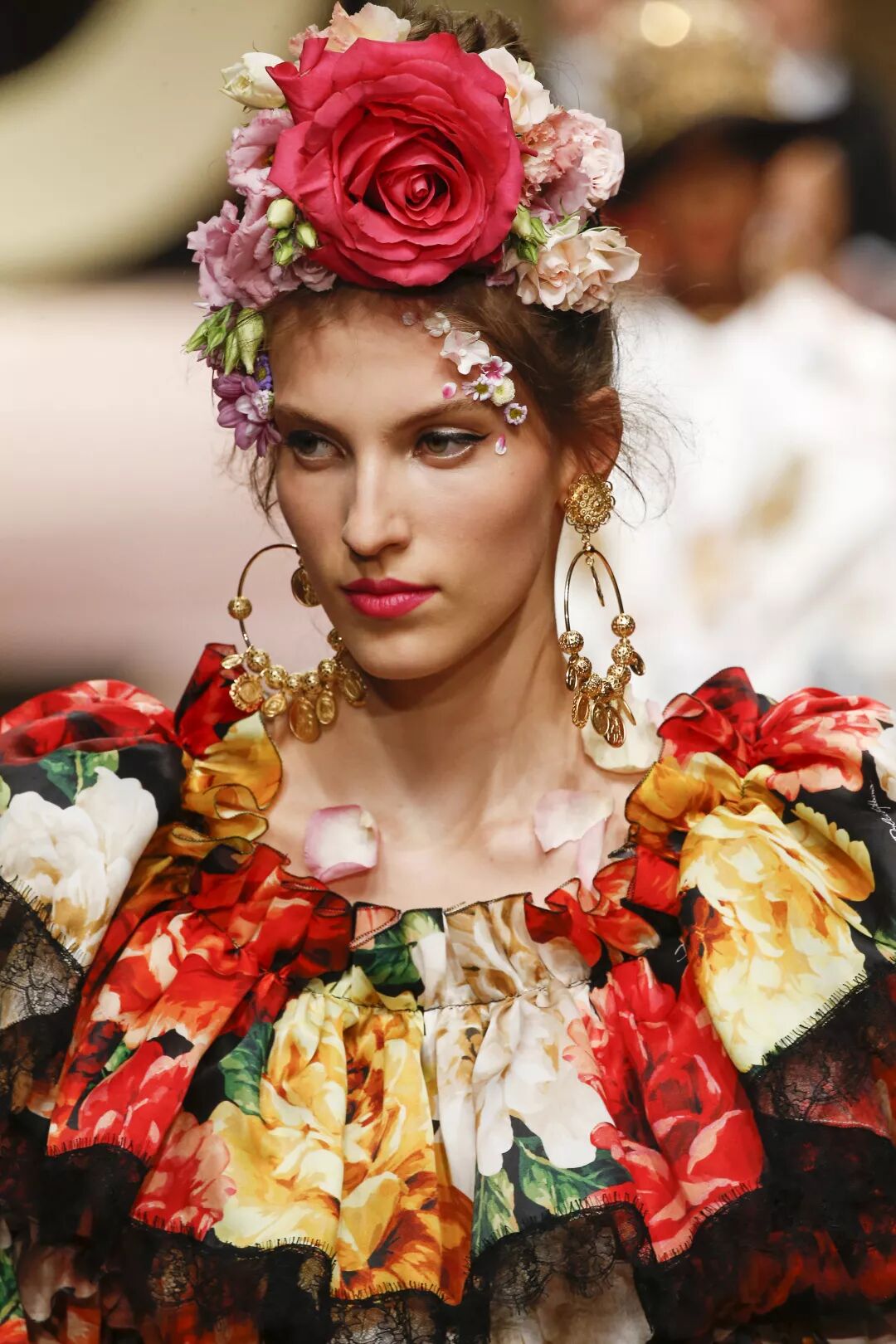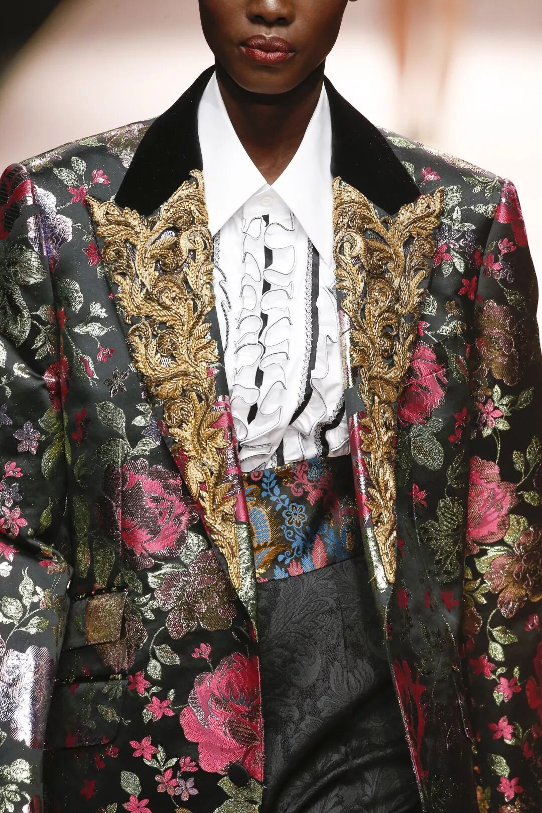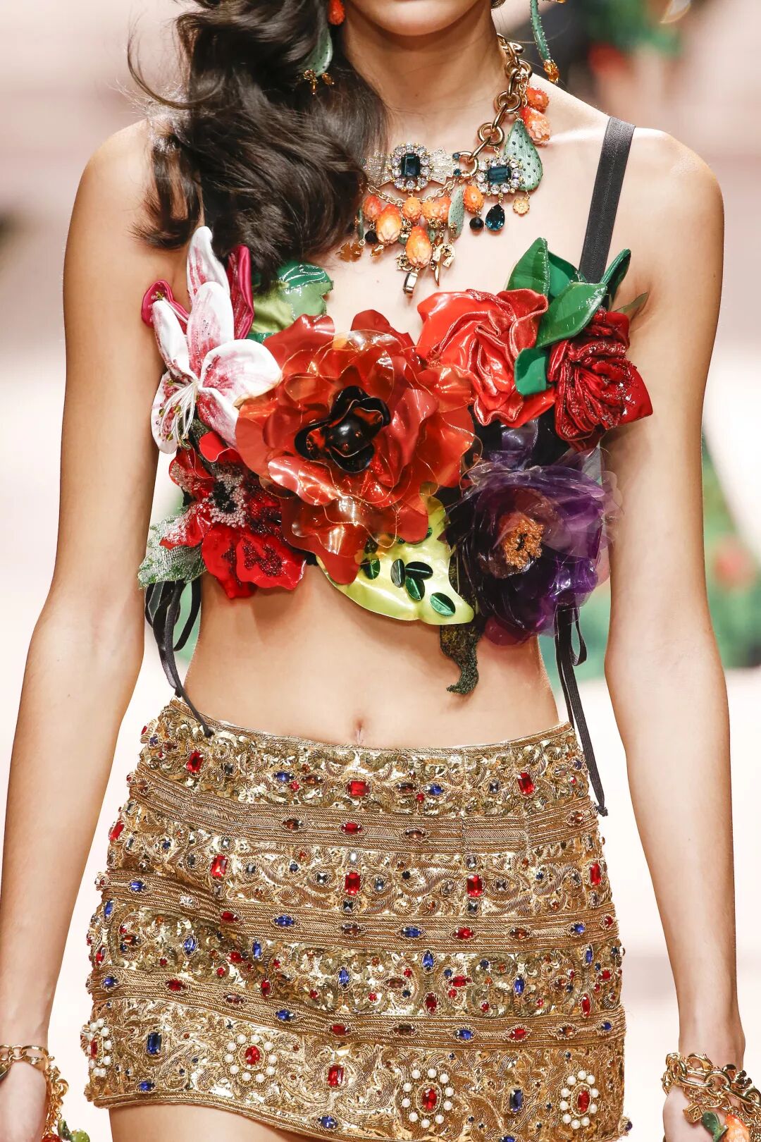 這場在Metropol劇院上演的大秀,從對模特的選擇,到對品牌經典面料與廓型的展現,無一不在凸顯品牌充滿西西里韻味的DNA,不同年齡層的女性,在流光溢彩的T型台上展現著自己最為獨一無二的美妙。在紛繁美妙的時裝大格局中,剪裁別致的西裝造型、耀眼的巴洛克裝飾和「綻放著」的3D花朵裝飾,這些從品牌創立之初就相伴隨行的經典元素,在當下看來,反而愈發顯得歷久彌新。