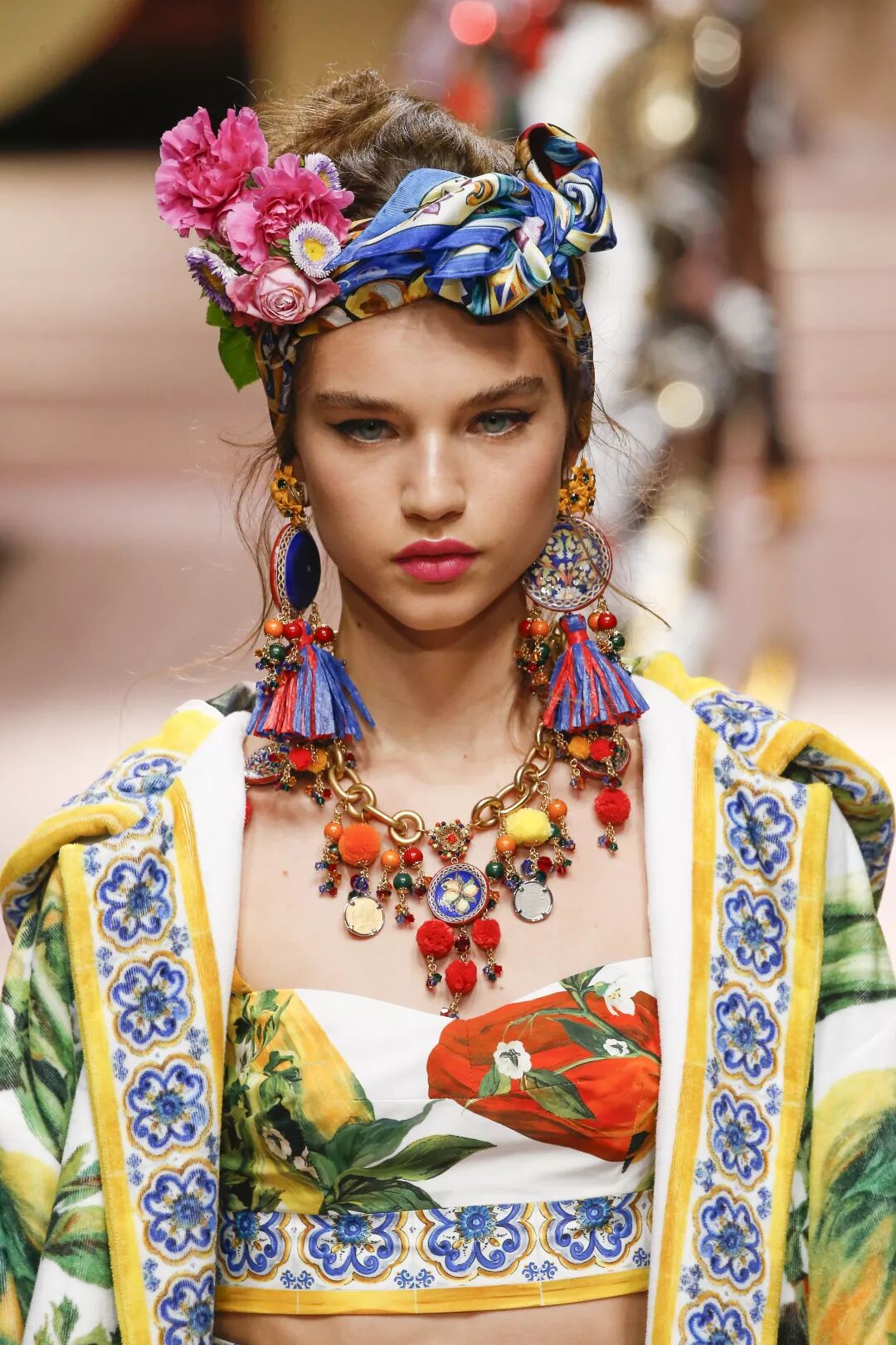 有別於當季諸多設計師對於所謂「潮流文化」的追捧,Dolce&Gabbana卻在最新一季的春夏時裝系列發布會上,用品牌最為人熟知的經典符號,將其源於西西里的迷人DNA完美呈現。這個始建於1985年的品牌,無時無刻不在向義大利文化和西西里——這座充滿神奇色彩的島嶼致敬。精美絕倫的制衣工藝;反射著義大利傳統文化的裝飾與點綴,以及象徵樂觀與愛意的明艷印花,都在品牌所走過的每一步輝煌中,詮釋著Domenico Dolce和Stefano Gabbana兩位設計師對美學、設計以及女性之美的理解。