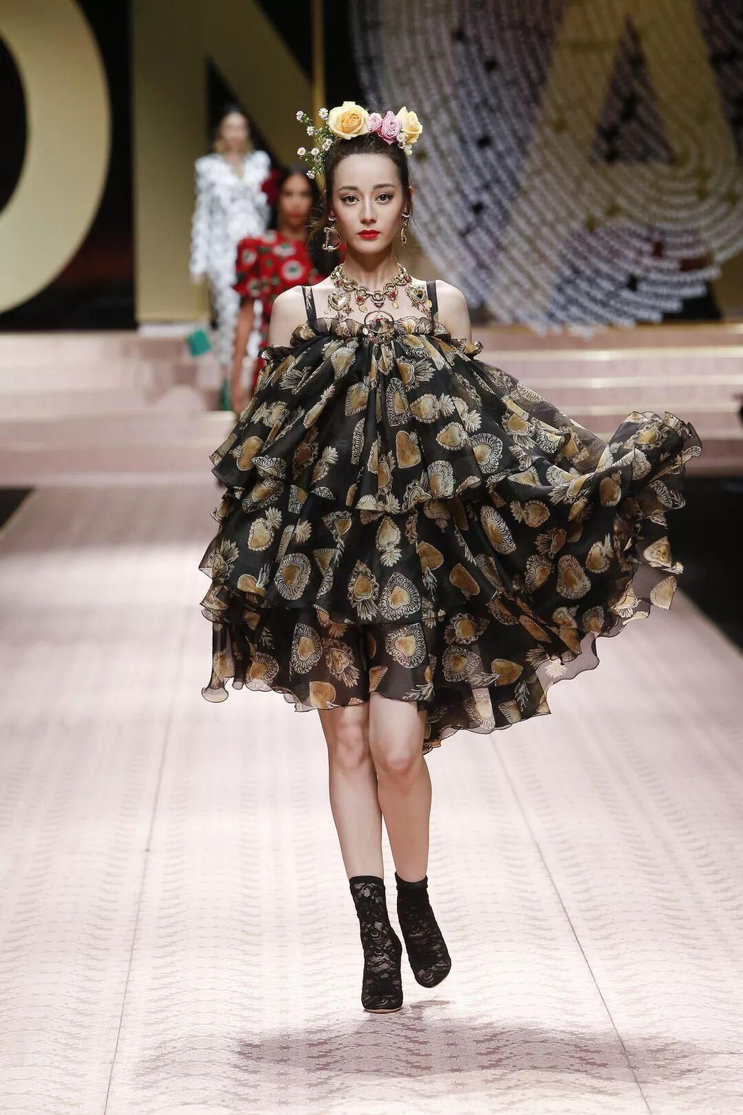 黑白波點裙裝、巴洛克風格鑲嵌夾克、黑色蕾絲胸衣式禮服以及豹紋裹身裙,這些象徵傳統美學的設計,在當季由風格迥異的超模Carla Bruni、Monica Bellucci、Helena Christensen以及Ashley Graham演繹,正如兩位設計師所言,Dolce&Gabbana的設計為女性呈現的是真摯的愛意,與年齡和身段無關。