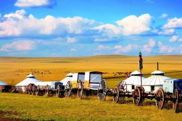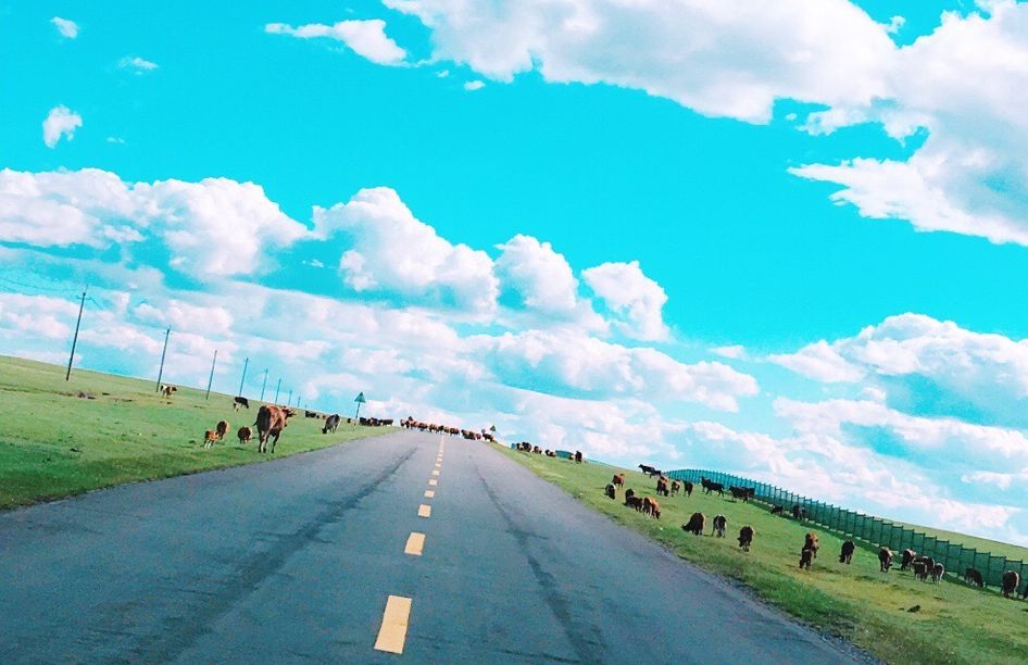 從海拉爾駛向大草原,涼爽的微風劃過耳畔,油亮的柏油路,像一條玄色的絲帶,隨著草原高低起伏,伸向遠方。