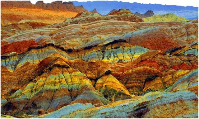 張掖的七彩丹霞,色如渥單,燦若明霞,光影流動間,像是上帝打落在凡間的調色盤。雨後初晴,丹霞深紅色的紋理,形成燦爛奪目的童話世界。
