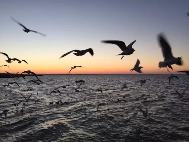 長滿蘆葦的居延海邊,當第一縷朝陽躍出水面,霞光暈開整片天空。水面瞬間被染成一片耀眼的通紅,湖面鷗鳥盤旋,翱翔翻飛。