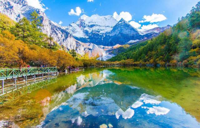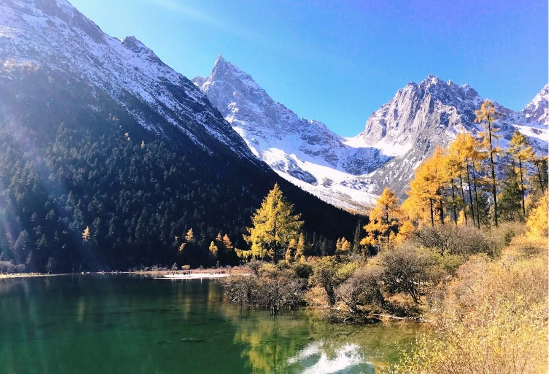 秋天是稻城最美的季節,白雪皚皚的神山,深邃幽藍的海子,金黃色的草甸…所有濃烈的色塊組合在一起,繪出一幅絕美的畫面。