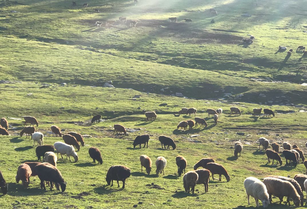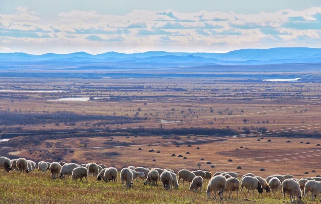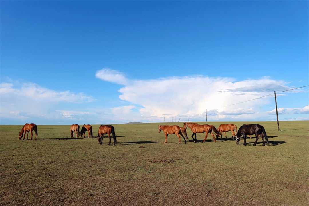 黃了的牧草、一群群棕色的馬、黑色的牛、白色的羊,零零散散的,悠閒自在…每一眼都仿佛一幅幅定格的油畫,令人心醉。