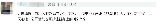 而鄭爽的粉絲對此也是非常氣憤:即使是最近才知道這個活動,中間也是夠時間發個通知告訴一下粉絲吧。粉絲花錢花時間大老遠跑去現場,為的就是親眼見一下偶像本人,去個家屬或者「替身」,算怎麼回事?粉絲只能自嘲:「追星本來就是單戀……我自作多情罷了」。