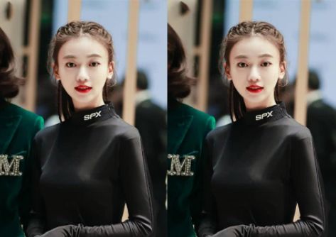 吳謹言的空氣瀏海,讓自己更加迷人,同時搭配的發色,襯托膚色,讓吳謹言更加高級,身穿修身款式上衣,苗條身材,盡收眼底。