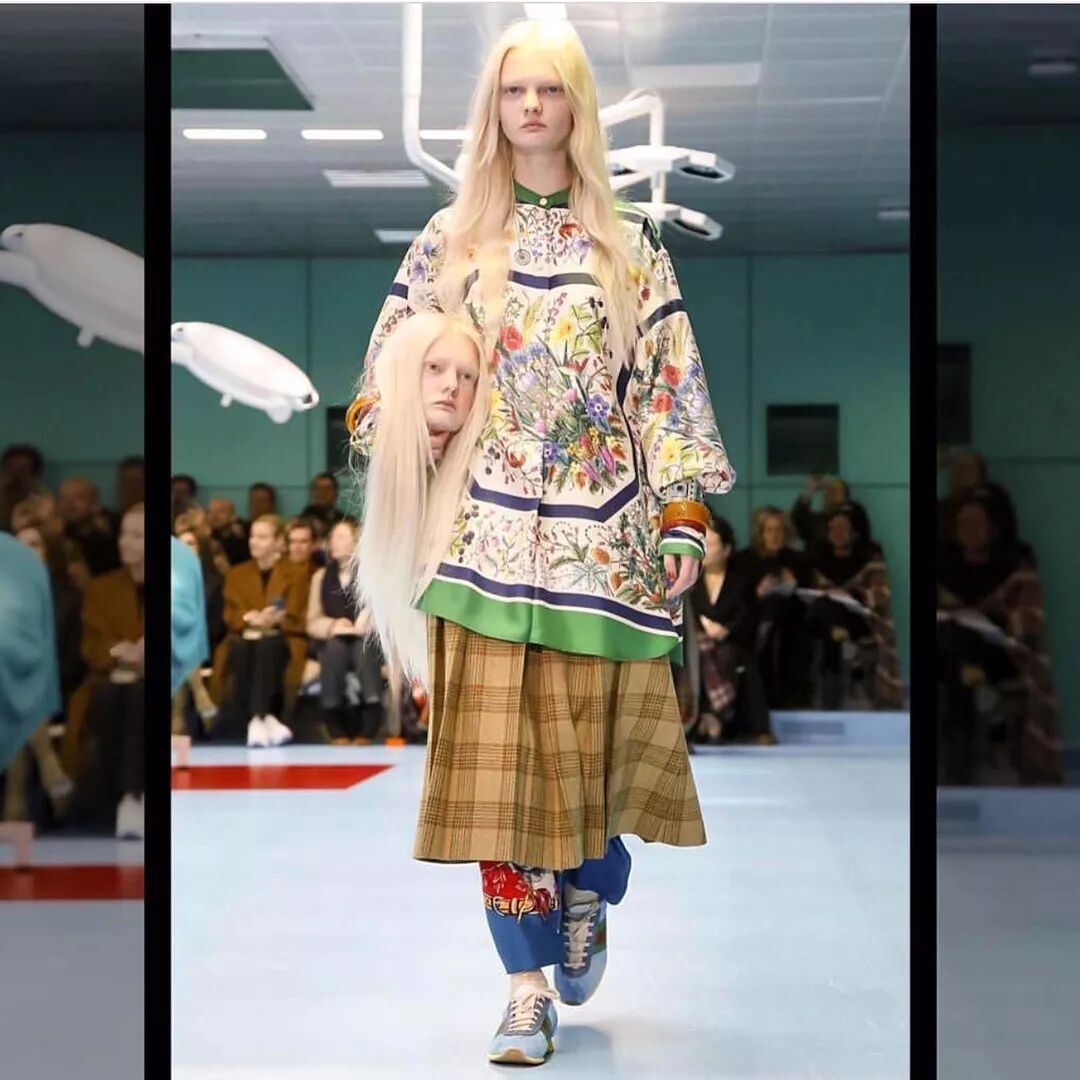 秀後立刻有記者聯繫到本人,談及「捧著一比一仿真頭顱的感受」,她的回答是——「我真的很努力克制自己不在秀場笑出來」。她還坦言「很想要把這顆頭送給媽媽,這樣她就不會太思念我。」(來自戰鬥民族的 Unia 果然不一般……)不過,這顆頭最後被存放在 Gucci 在米蘭的展廳中。