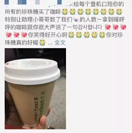 會親自買咖啡分給粉絲們喝,這樣的逆應援簡直暖到心尖了吧。