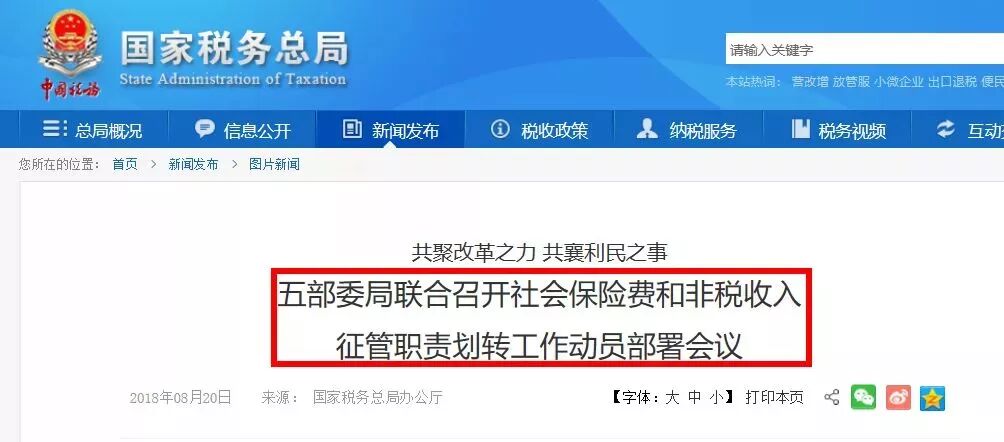 今年12月10日前要完成社會保險費和第一批非稅收入征管職責劃轉交接工作,自2019年1月1日起由稅務部門統一征收各項社會保險費和先行劃轉的非稅收入。