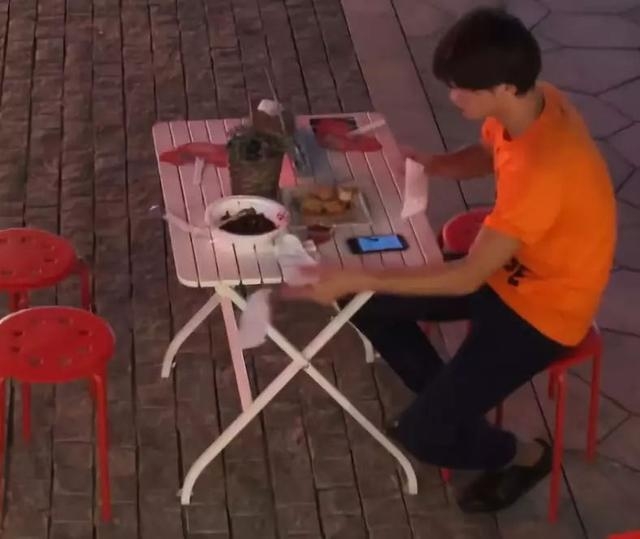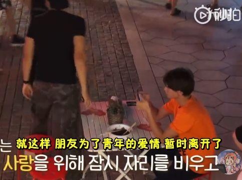 為了朋友的愛情,他起身去找賣花的小孩兒了,留下橙衣小哥哥一個人。