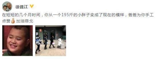 徐菲也是相當有毅力的一個小夥子,短短幾個月時間里,就從195斤的小胖子變成了清爽少年,連老爸徐錦江都為他點讚。
